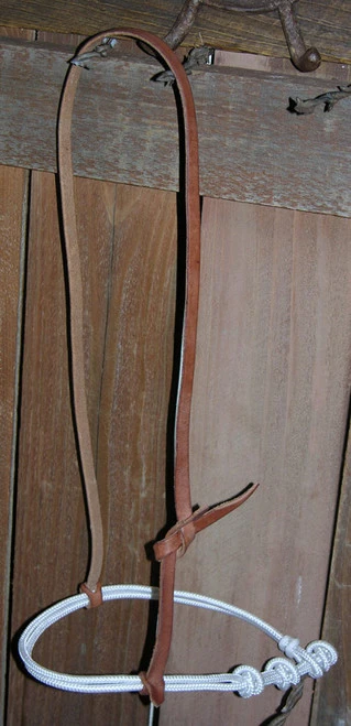 Adjustable rope Noseband from Buckaroo is crafted in the USA from premium Hermann Oak Heavy Harness Leather. Harness leather is supple, soft, durable, and weather resistant, making it a great choice for Western tack. This Caveson Noseband has a double width of 1/8″ nylon rope that is strong yet soft on your horse’s face. Adjusts to fit with Cowboy knot. Caveson has Nickel Plated hardware. With proper care, this quality Western caveson noseband is designed for many years of outstanding performance.