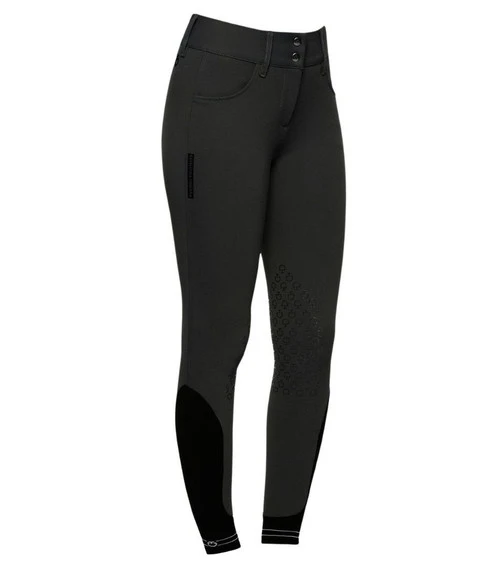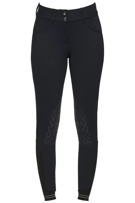 Cavalleria Toscana American Logo Tape Breeches have all your favorite luxury and performance features plus wonderful new fabric. Ladies riding breeches have a classic euroseat, CT grip knees, and a low/mid rise with wide waistband. The waistband has silicone strips inside that prevent your shirt from coming untucked.
