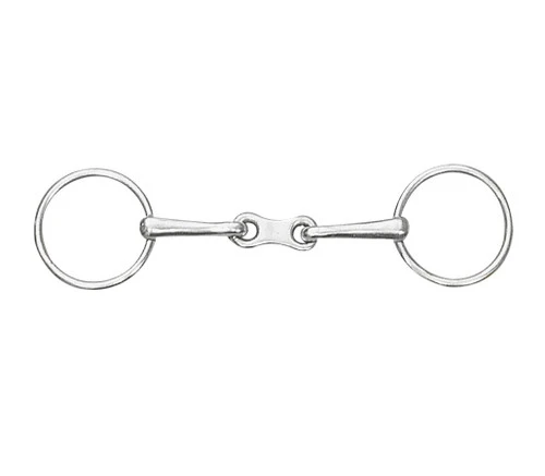 Centaur French Link Loose Ring Bradoon for dressage has a Metalab stainless steel French link mouth. The cheeks are 55 mm rings. Sizes: 5.25″ and 5.75″.