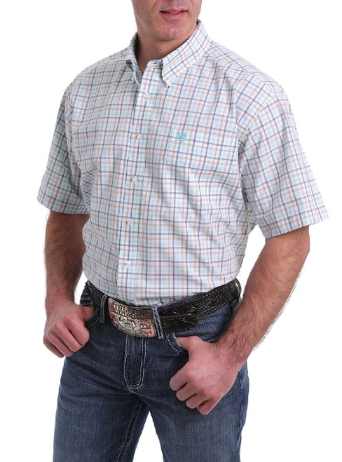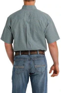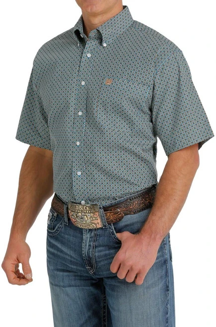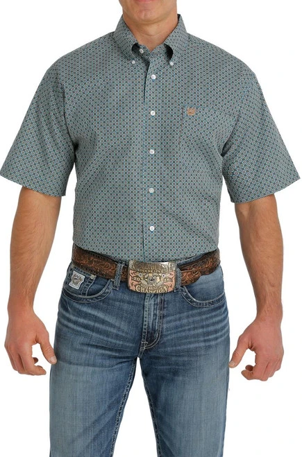 Men’s Cotton Print Button Down Short Sleeve Shirt from Cinch looks professional and neat while offering the cool comfort of cotton. Nicely tailored and finished short sleeve Western shirt has a straight back yoke with box pleat for room to move.