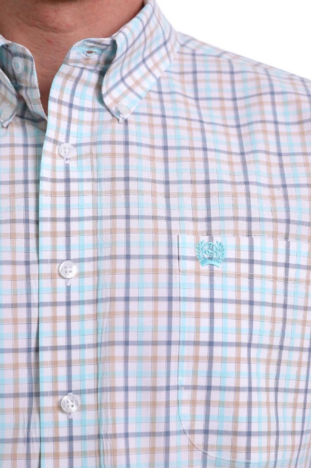 The button down collar is a classic style, always appropriate for competition, everyday riding, or work. Breathable crisp cotton is ideal for summer. Cinch Cotton Print Button Down Short Sleeve Shirt has a generously sized pocket with embroidered logo. A taped neck, sturdy buttons, finished seams, and matched pattern attest to Cinch quality.