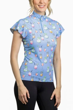 The Kastel Denmark Flutter Sleeve Shirt has such a pretty, feminine look in signature Kastel Denmark prints. It’s designed for athletic performance with UPF30+ sun protection and ultra soft, silky stretch fabric. Quarter zip riding top has the short flutter sleeve that’s great for hot weather riding and exercise.