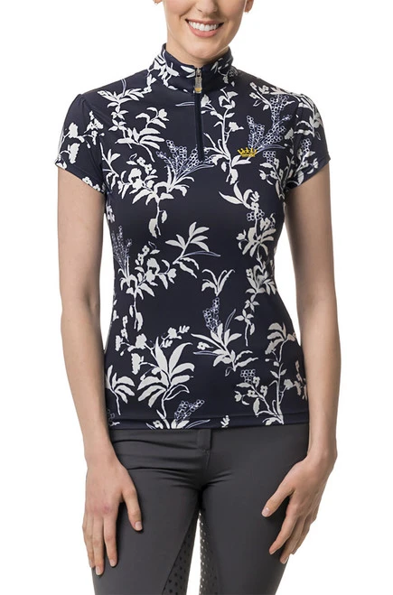 Kastel Denmark Shirred Cap Sleeve Shirt in signature prints is made with a silky, breathable fabric that wicks moisture, dries quickly, and helps reduce odor formation. The UPF 30+ sun protection is built right in! This cap sleeve quarter zip sports top is perfect for riding as well as hiking, running, tennis, and other outdoor sports. Kastel Denmark Shirred Cap Sleeve Sun Shirt has stretchy fabric that allows maximum air flow. Protect your skin from the sun while you ride in style in the new Shirred Cap Sleeve Sun Shirt by Kastel Denmark!