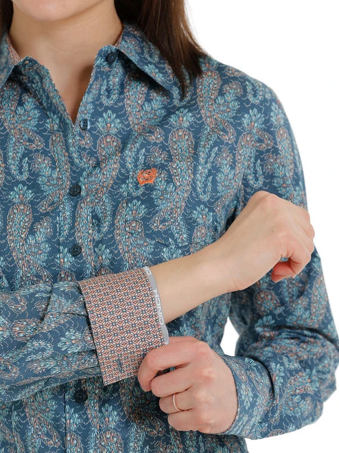 Ladies Cinch Paisley Blue Shirt Long Sleeve