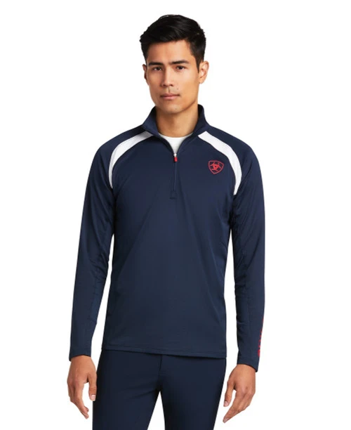 Ariat Men’s Sunstopper 2.0 Quarter Zip Baselayer, including the new Team Navy combo, is a great looking technical riding shirt for male riders. Providing sun protection at its best, the Men’s Sunstopper Shirt by Ariat is the perfect lightweight active shirt to keep you cool and comfortable. The Sunstopper riding shirt has moisture wicking, breathable fabric and UPF45 sun protection!