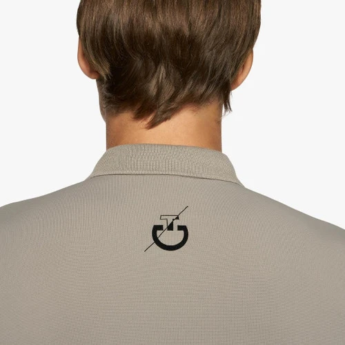 The sporty Cavalleria Toscana Men’s Raceway Polo in cotton pique is comfortable as well as stylish with a sporty CT logo graphic. The men’s short sleeve equestrian polo shirt in versatile Taupe Grey has a TEAM Cavalleria Toscana flocked print at the left chest. The cotton pique fabric is cool and breathable for hot weather months.