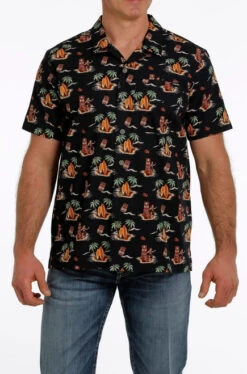Cinch Surfboard Island Shirt is all cotton so it’s breathable and comfortable. Short sleeve Western shirt has a straight back yoke with box pleat for easy range of motion. Casual riding shirt for men has a sophisticated look with just the right colors on a black background. The front has sturdy Cinch branded buttons and a small logo on the single chest pocket. Men’s Cinch Surfboard Island Shirt offers a sense of fun as well as tradition and is definitely ready for post-barn relaxation.