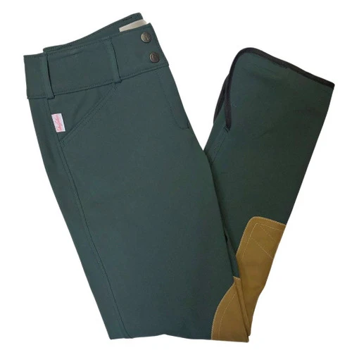 Tailored Sportsman Front Zip Low Rise Vintage Knee Patch Breeches in amazing colors! With the distinctive contrast tan knee patches, these Vintage Collection Trophy Hunter Breeches from Tailored Sportsman are the ultimate in luxury style. The modern TS Trophy Hunter is comfortable, flattering, and durable. The 4-way stretch technical fabric is a lightweight cotton microfiber blend that wicks moisture and dries quickly. The low rise waist is comfortable with a 2 inch waistband that flatters and accommodates wide width belts, including the Tailored Sportsman belts at Mary’s.