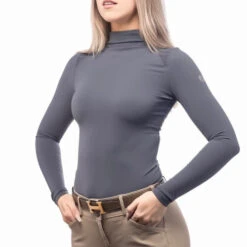 The TKEQ Chloe High Collar Technical Top is a fantastic training shirt option for riders that want extra UV protection and coverage at the neck and upper chest. The unique and flattering profile offers slip-on ease with no zipper.